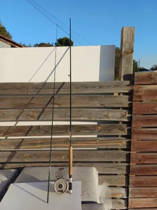 Conjunto de caña de pesca y carrete. - Caña de pesca al látigo Ragot Sense de 2 tramos. 80% carbono. - Carrete Rimfly - 2 líneas Floatingline + rollo de línea trenzada de unión con tramo final - No se envía