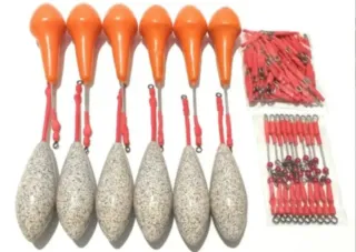 14 Plomos de Pesca Naranja y Rojo, urfes, grapas.