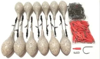 ✅ 12 Plomos Pesca Surfcasting, Grapas, Anzuelos.