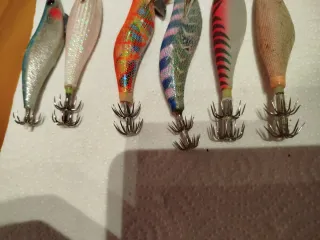 Conjunto de seis jibioneras o pajaritos para la pesca. Compuesto por 1 artesano, DTD, killer, Savage gear, Youzuris. - Diseños variados y coloridos. - Anzuelos triples de acero inoxidable. - Ideales para la pesca de cefalópodos. Palabra clave pesca calamar calamareti Youzuri JATSUI Daiwa esmeraldas kalikunnan turkana JLC JIGGIN kayaks spinning plomos salabar señuelo potera plomo rapala pulpera pajaritos ballistic realfish Mustang egido carrete pulpo pulpera siena cañas majorcraft ninja anzuelo jibia choco potas barco red pez jig