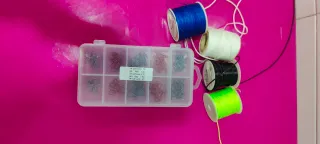 Se vende lote de anzuelos de pesca variados y herramientas para preparar el empatillado. Incluye torno para trabajar - Incluye cajas con diferentes tipos de anzuelos, anillas, hilos