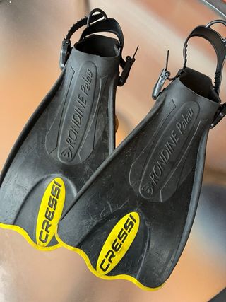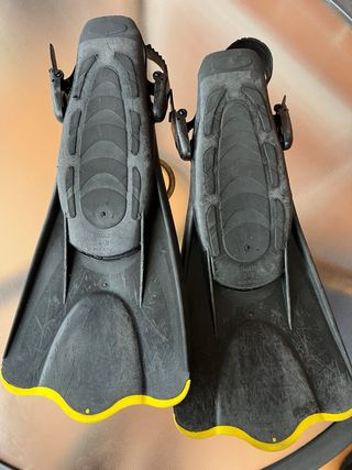 aletas cortitas de talla S-M ( talla 38-42) con desgraste tipico por el uso, pero en buenas condiciones