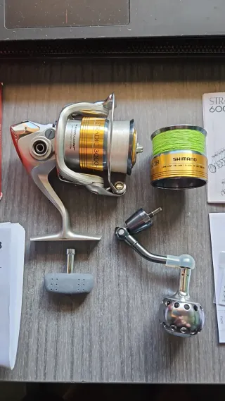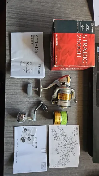 Carrete de pesca Shimano Stradic 2500FI. - Bobina con Nylon y otra con Trenzado YGK G-SOUL con poco uso - Bobina extra tamaño 3000 - Incluye caja original y manuales - Pomo de combate + Original NO NEGOCIABLE. NO SE CONTESTA A REGATEADORES. En perfecto estado, solo con un par de arañazos mínimos y superficiales como se ve en las fotos.