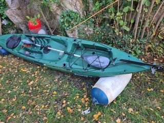 Galaxy Black Marlyn prácticamente nuevo, menos de diez salidas. Se vende por no usar. Incluye: Mator Torquedo ultralaight 403 AC 1cv y batería. Sonda y transductor Garmin striker vivid 5cv. Bateria. Carrito de ruedas de globo Aqua Design. Muchos accesorios Raiblaza. Se puede vender la sonda, el kayak y el motor por separado. Cualquier duda consultarme.