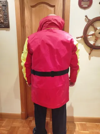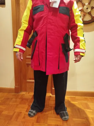 Chaqueta técnica de la marca Baleno, diseñada para pesca y navegación de atura. Es un Buoyancy aid de 50N, lo que significa que proporciona flotabilidad adicional y mantiene el cuerpo abrigado, pero no es un chaleco salvavidas. Características: Talla XXL 50 Newtons de flotación (EN 393) Color rojo y amarillo de alta visibilidad Tejido Climatec: impermeable, cortaviento y transpirable Fabricada por Sioen (Bélgica), especialistas en ropa técnica de mar Cintas reflectantes en mangas Bolsillos grandes frontales y laterales Incluye silbato de emergencia Cinturones y ajustes en muñecas de neopreno para un cierre más hermético Cierre fro