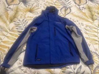 Chaqueta de pesca impermeable Shimano en color azul y gris. - Talla L. - Diseño con capucha. - Cremalleras frontales y en bolsillos.