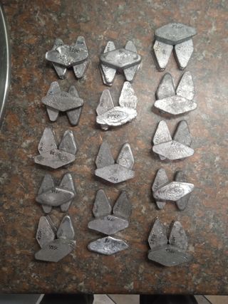 Plomos de para pescar echos artesanal con moldes.Precio por dos unidades.Tengo los moldes que también los vendo así te salen gratis hablaríamos del precio de los moldes .No los regalo.