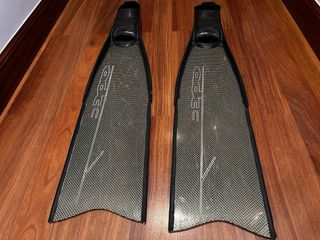 Aletas de pesca submarina. Fabricadas con una combinación de carbono y kevlar, que les da mas resistencia a la hora de romper. - Pala de carbono y kevlar. - Calzante de goma omer 42/44