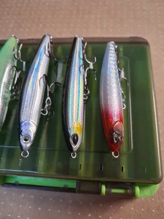 Lote de señuelos tamaños entre 80mm y 105mm y pesos entre 8 y 11gramos y 2 jigs de 10gramos. Todo sin estrenar. Mas en mi perfil. Spinning, muestras, rapala, minnow, lubina, robalo, pesca