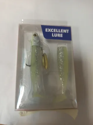 Set de dos señuelos de pesca de la marca Excellent Lure. - Diseño en forma de pez. - Acabado brillante con escamas plateadas. - Incluye un señuelo con anzuelo y un spinner dorado. Nuevos a estrenar