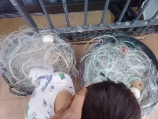 Red de pesca lista para usar. Incluye varios flotadores para su visibilidad. Tres pasa y media 3 metros y medio - Red de pesca d tanza - Flotadores de diferentes tamaños.