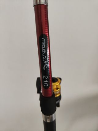 Vendo una caña de pescar roja con su carrete dorado. Todo Nuevo - Caña telescópica 2.10 mts. - Carrete de color dorado. - Ideal tirar a fondo,o al curry