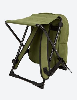 Mochila plegable con silla incorporada, ideal para actividades al aire libre. Es de color verde oliva y está totalmente nueva a estrenar. - con capacidad de carga hasta 110KG. - con varios bolsillos prácticos. - producto hecho con un 100% de poliéster reciclado. - Se pliega fácilmente - Perfecta para pescar, acampar o cualquier salida al aire libre.