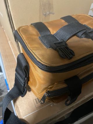 Funda o bolsa para cañas marca Evia. Material acrílico tipo tela de lona impermeable...140 cm de largo, 30 cm de ancho, 20 cm de grosor. Dos bolsillos para piketas o soportes de Cañas de 88 cm, 1 bolsillo menor de 20 cm de profundidad. Poco uso como nueva.