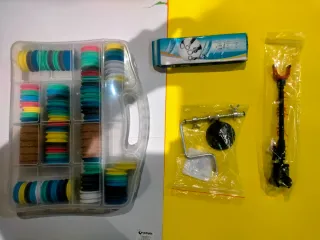 Se vende kit de pesca con varios accesorios. 1.- Maletín de plástico transparente con 90 plegadores en su mayoría de caucho para almacenar, clasificar, y transportar Bajos de línea montados de 4,50 x 1 cm cada uno. 2.- Soporte telescópico extensible para apoyar la caña de pesca, articulable en varias posiciones y giratorio, adaptable a carros, equipos de pesca y barco. Se despliega desde 25 hasta 45,50 cm. 3.- Bobinadora para reponer, rellenar y traspasar sedal desde la bobina hasta los carretes de pesca. 4.- Pinza de acero inoxidable para recoger, sujetar y extraer el pescado por la boca. Todo A Estrenar.