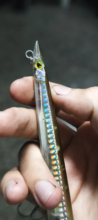 Señuelo diseñado para la pesca a spinning. Su forma alargada y acabado brillante imitan a un lanzon - Color plateado con detalles iridiscentes. - triples de calidad - Ojos realistas. Muy efectivo para lubina en ria