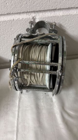 Carrete de pesca plateado con detalles en azul y negro. - Bobina con hilo blanco. - Mango giratorio con empuñadura negra. Necesita reparacion corona interior el resto esta perfecto santander no envio