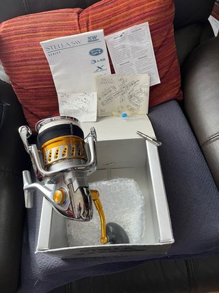 Carrete de pesca Shimano Stella 20000 SW. Precio por cada unidad (hay dos). Spining pesado o Curry. También dos cañas Shimano Vengeance VSTP2030 de Altura perfectas si interesan. Solo usado TODO poquísimo. Envío de más fotos particular. No curiosos ni ofertas sin sentido. - Incluye uno caja, manuales y accesorios el segundo carrete con su funda Shimano. - Diseño plateado y dorado. Estado IMPECABLES ni un roce u holgura y guardados directamente tras su revisión. Material prácticamente NUEVO. Lesión grave de espalda que ni me deja ni me dejará disfrutarlos.