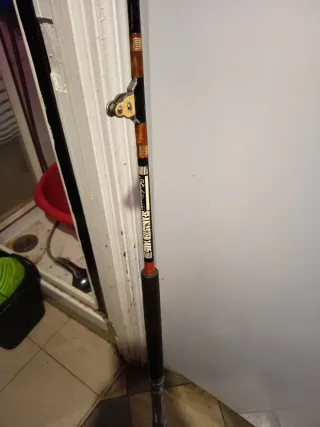 Caña de pesca de altura con una longitud de 1,98 cm. Diseñada para la pesca en alta mar. Está en buen estado únicamente que hay que encintar un poquitín más las anillas puesto que se le ha deteriorado. - Longitud: 1,98 metros. - Tipo: Caña de altura.