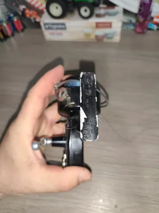Conjunto de elementos para pesca. concretamente parte de un sistema de pesca con palangre o redes, no industrial. Las piezas redondas blancas con palanca metálica inox son roldanas / poleas para línea o cable. Sirven para: • Guiar el cabo o línea de pesca • Reducir fricción cuando se vira (se recoge) el aparejo • La palanca actúa como traba o seguro para que la línea no se salga Se usan mucho en: • Pesca artesanal y semi-industrial • Embarcaciones pequeñas y medianas • Sistemas manuales o semi-automáticos d
