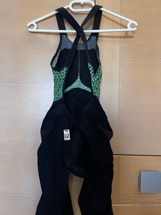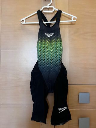 Traje de baño de competición Speedo Fastskin para mujer. - Diseño con estampado degradado en verde y negro. - Logo de Speedo en blanco en la parte frontal. - Piernas largas hasta la rodilla. - Tirantes cruzados en la espalda.