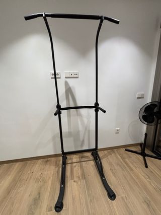 Estación multifuncional para entrenar en casa. - Estructura de acero resistente. - Barras para dominadas y fondos. - Diseño compacto. En perfecto estado
