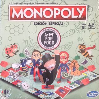 Juego de mesa Monopoly Edición Especial Act For Food. - Edición especial con temática de Act For Food y Comer Mejor. - Diseñado para 2-6 jugadores. - Edad recomendada: 8+ años.