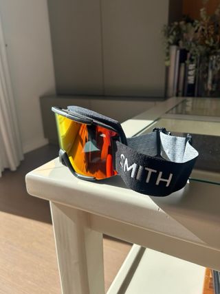 Gafas de nieve Smith Squad con tecnología Cromapop. - Lente espejada con reflejos naranjas y amarillos. - Montura negra. - Correa negra con detalles blancos. -2 Lentes intercanbiables.