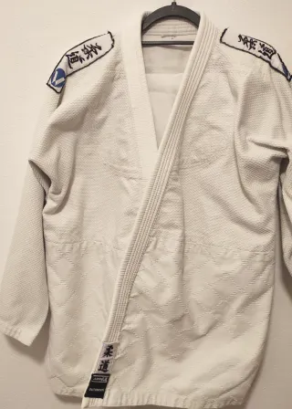 Judogi de Decathlon, modelo "outshock 500" (550 gr) talla 180, para alguien que mida entre 170-176 cm. No se usa ya que tengo varios kimonos de marcas superiores. Talla: 180 (170-176 cm) Gramaje : 550 gr Para: principiantes o como kimono de repuesto, valido para entrenar jiu jitsu brasileño aunque el corte no es ceñido. Palabras clave: judo, judogi, kimono, bjj, jiu jitsu, jiu jitsu brasileño, aikido.