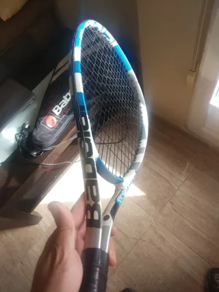 Raqueta de frontón de la marca Babolat. La raqueta tiene marcas de uso en la pintura y un par de golpes milimétricos como se muestra en las fotos. La estructura está bien. Cordaje y grip nuevos. Se entrega con funda babolat. Más raquetas en el perfil.