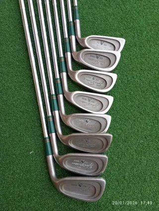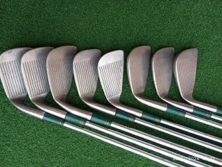 Conjunto de palos de golf de la marca Mac Gregor Estado del grip agrietado se puede ver en fotos 3- 1'01'5 cm 4- 1'00 5-99 6-98 7-96 8-95'5 9-94'5 P-93 cm Las medidas son desde la base de la cabeza asta la parte superior del grip - Diseño clásico. - Varillas metálicas. - en mi perfil puedes ver mas