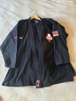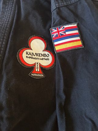 Kimono de karate negro, talla 170, que incluye pantalones (de escuela Kajukenbo Horadada) - Chaqueta de karate negra. - Pantalones de karate negros. si hace falta, es posible quitar las emblemas. 📍Pilar de la Horadada 03190