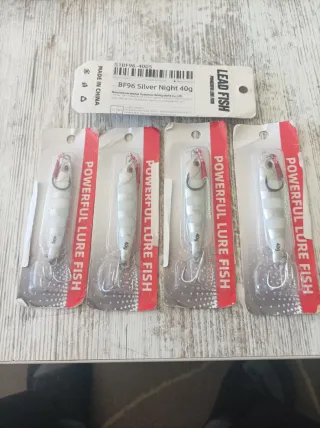Set de cuatro señuelos de pesca de la marca Lead Fish. - Modelo: BF96 Silver Night. - Peso: 40g cada uno. - Color: Plateado con detalles.
