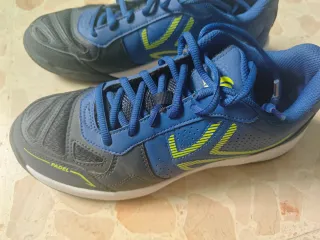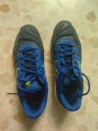 Zapatillas deportivas de pádel en color azul y negro. Perfectas para la pista. - Diseño deportivo. - Cordones azules. - Detalles en amarillo.