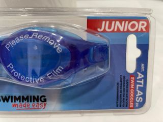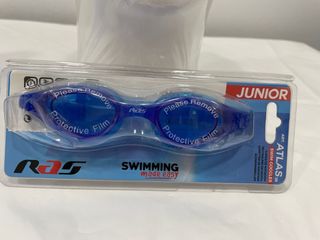 Gafas de natación para niños de la marca RAS, modelo Atlas Jr. - Color azul. - Incluyen película protectora en las lentes. - Diseño para natación.