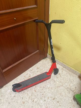 Patinete de color rojo, ideal para los más pequeños. Se encuentra en perfecto estado. - Manillar negro. - Ruedas negras.