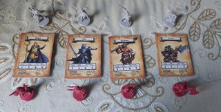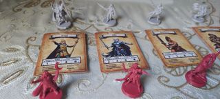 Se vende lote de 4 figuras de héroes de Heroquest junto con 4 figuras alternativas, con sus cartas de personajes de ambos géneros. - Figuras de plástico. - Incluye cartas de personaje. - Figuras de reemplazo o adicionales.