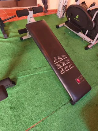 Banco de musculación Decathlon Bench 900, muy estable y resistente. Ideal para press banca, mancuernas, fuerza general y entrenamientos en casa o gimnasio. Ofrece múltiples posiciones y una gran capacidad de carga. Está en muy buen estado, listo para usar y perfecto para completar tu zona de entrenamiento. Puedo ajustar precio si compras más material del perfil. - Modelo: Bench 900 - Marca: Decathlon - Uso: Fuerza y musculación - Estado: Aceptable