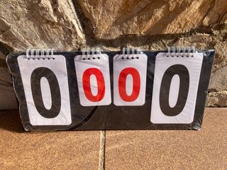 Marcador portátil con cuatro dígitos, ideal para llevar a cualquier parte. Perfecto para registrar puntuaciones. - Diseño compacto y ligero. - Dígitos en blanco y rojo. - Encuadernación en espiral. Esta nuevo con plastico. Lo unico que el envoltorio esta un poco roto de un lado.