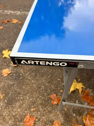 Se vende mesa de Ping Pong en perfecto estado, se puede mover y guarda con facilidad al plegarse por la mitad y tener cuatro ruedas. Podemos hacer un envío fuera de wallapop. Está completamente funcional, los cierres de seguridad para desplegar la mesa o jugar con solo un lado funcionan sin problema. Se puso a llover cuando hice las fotos, después de limpiarla se verá nueva Los únicos desperfectos que presenta y por ellos el precio, se pueden ver en las tres ultimas fotos: Las pegatinas se han desgastado por el paso del tiempo, algunas tuercas se han oxidado, y en uno de los laterales superiores se ha deteriorado la pintura.
