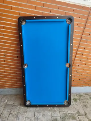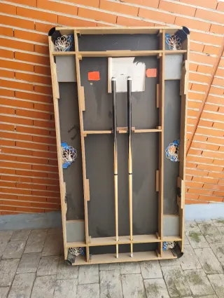 Se vende mesa de billar con dos tacos SIN bolas ni patas. Dispone además de una madera para convertirla a mesa de ping pong. Tiene unas medidas de 83 de ancho por 152 de largo aproximadamente Se vende porque lo cogí para restaurarlo pero no he tenido tiempo y al final ocupa espacio.