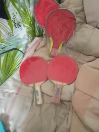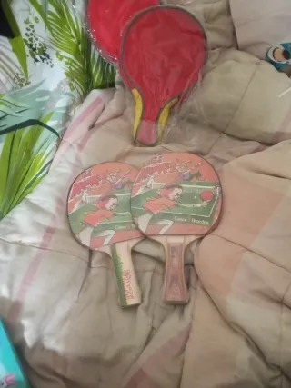 Pack de dos palas de ping pong con una pelota. - Dos palas de ping pong. - Una pelota de ping pong. - Incluyo también una de tenis por si la quieres.