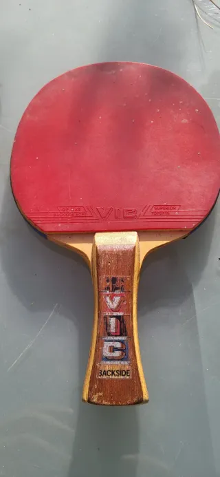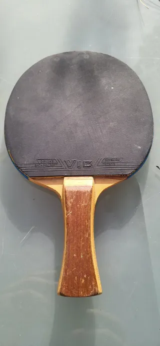 Pala de ping pong vintage de la marca Vic. - Modelo Deluxe. - Goma Backside Soft. - Goma Superior Topen. - Mango de madera.