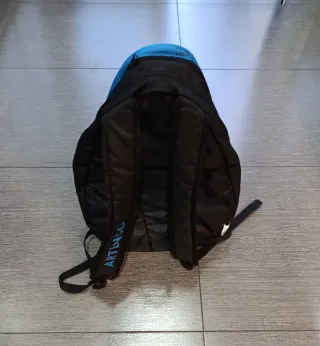 Mochila de la marca Artengo, ideal para llevar tu equipación de tenis. - Color azul y negro. - Diseño deportivo. - Compartimento principal espacioso. - 19 l - Como nueva.