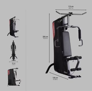 Máquina de gimnasio de la marca Decathlon apenas usada,cuesta 449€,es ideal para entrenar en casa. Su diseño permite realizar diversos ejercicios. - Estructura metálica. - Incluye funda protectora. - Asiento acolchado. Con este home gym podrás trabajar todos los grupos musculares con total seguridad gracias a las cargas guiadas. Ideal para empezar. - Carga ajustable de 5 kg en 5 kg hasta 60 kg. - Asiento regulable (en 3 alturas) y retráctil para una máxima compacidad. - Los reposapiés son abatibles para la tracción horizontal. ¿La ventaja añadida? Puedes trabajar todos tus músculos en una superficie de menos de 2 m2 en uso.
