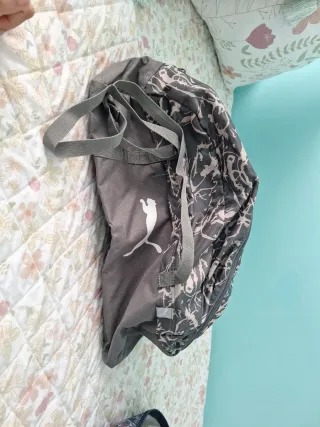 Mochila deportiva de la marca Puma con un diseño moderno y práctico. - Color gris con estampado. - Asas de transporte. - Logo de Puma visible.