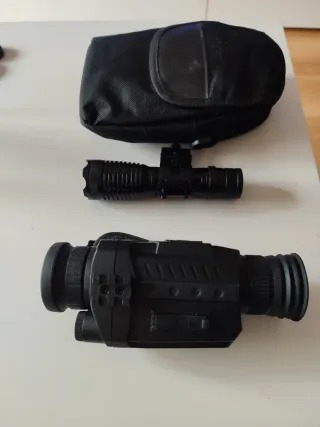 Se vende visor nocturno junto con una linterna IR y su funda. - Visor nocturno de color negro. - Linterna táctica IR con montura. - Funda de transporte. Funciona bastante bien a una distancia de 30-50 metros más o menos teniendo en cuenta que es de AliExpress, tiene ranura para sd con posibilidad de grabar.