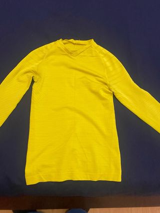 Sudadera de manga larga en color amarillo, ideal para la práctica deportiva. - Tejido ligero y transpirable. - Diseño con cuello redondo. - Mangas y bajo con acabado elástico.
