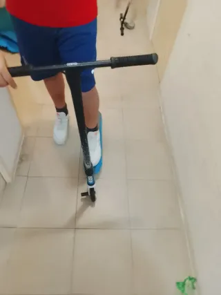 Patinete de la marca Oxelo, en perfecto estado ya que nunca ha sido utilizado. - Color negro y plateado. - Manillar ajustable.
