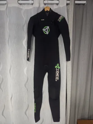 Traje de neopreno Xcel de manga larga, ideal para deportes acuáticos. - Color negro. - Cierre X-Zip. - mi hijo mide unos 176 cm y usa la talla S/M de hombre y le valió perfectamente - en las fotos se ve como es neopreno al revés en perfectos condiciones - también vendo guantes marca Mares y botines escarpines talla 43 prácticamente nuevos